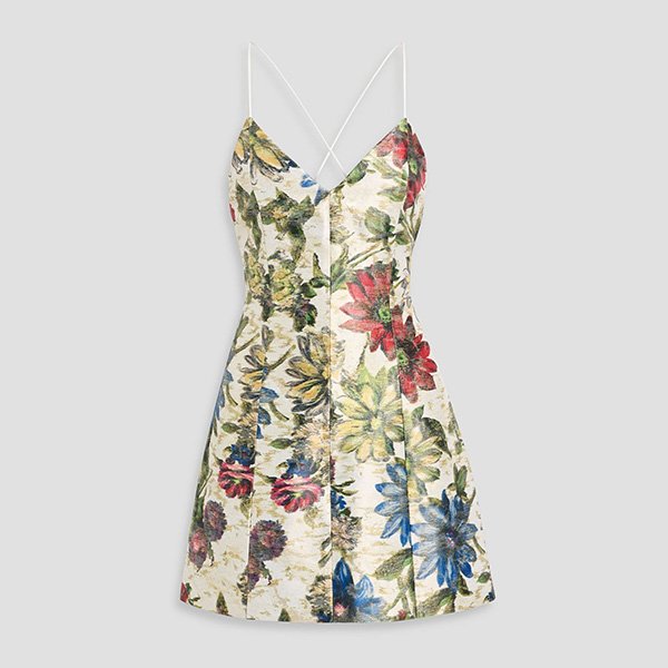ALICE And OLIVIA Tayla Metallic Floral-Print Jacquard Mini Dress