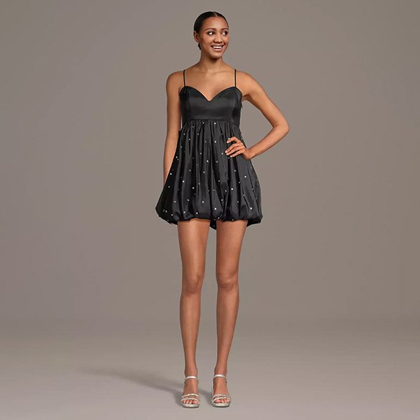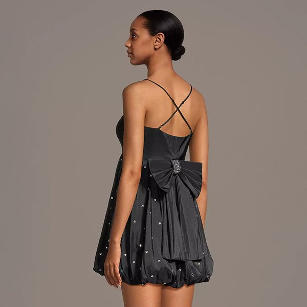 Step into the spotlight and command attention with the enchanting Bow Back Bubble Mini Dress by City Triangles. This exquisite garment effortlessly blends playful sophistication with eye-catching flair, making it the perfect choice for homecoming, prom, or any special occasion where you want to shine.