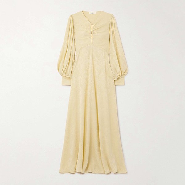 Step into a world of elegance and floral finesse with the Chloé Floral Jacquard Midi Dress—a timeless piece destined to become a cherished favorite in your collection.