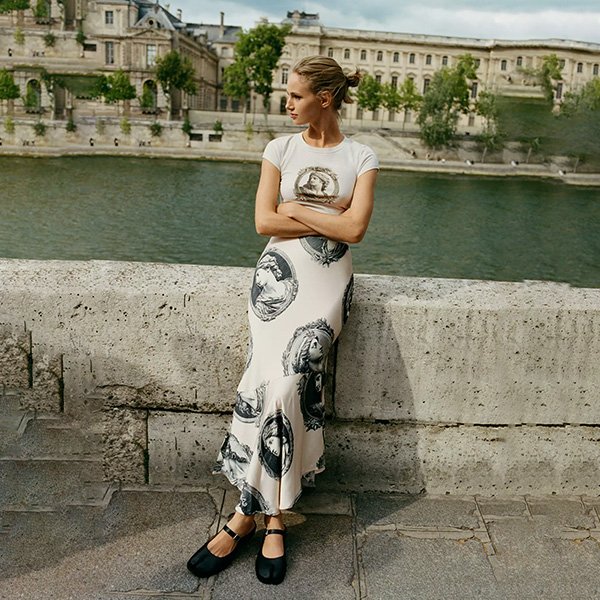 Elevate your wardrobe with the exquisite Maeve Satin Pull-On Midi Skirt-Ivory Pattern in a captivating ivory pattern. This stunning piece effortlessly combines contemporary elegance with timeless allure, making it a must-have addition to any fashion-forward ensemble.