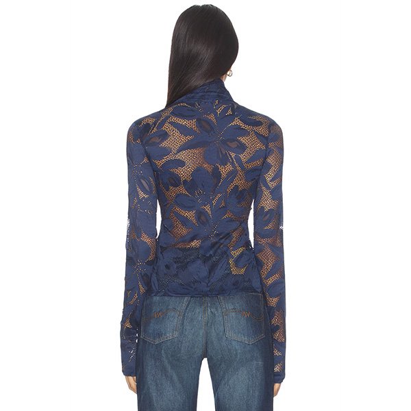Meticulously constructed from a luxurious blend of 87% polyester and 13% spandex, this top ensures a comfortable fit while gracefully hugging your silhouette. The lightweight tricot fabric offers a delicate drape, perfect for layering or wearing solo. With its turtleneck styling, the Zadie top adds an air of refinement, making it a versatile staple for any chic occasion.