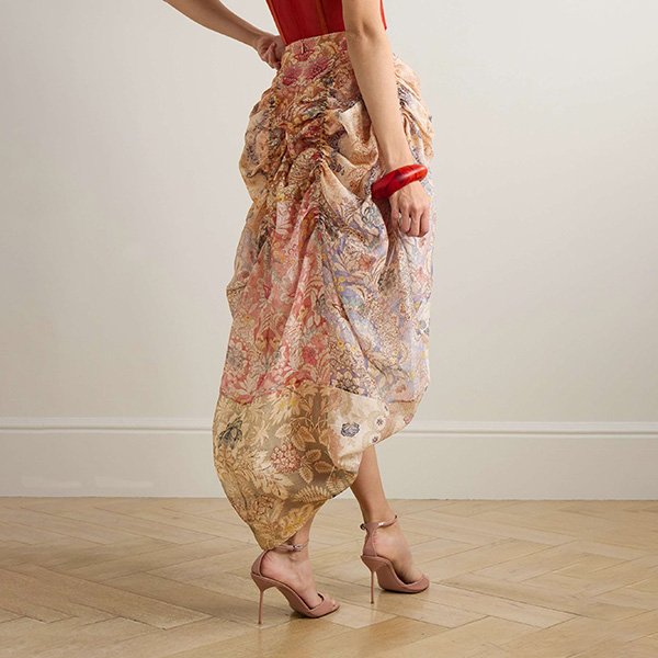 Step into a world where elegance meets artistry with the Zimmermann Asymmetric Draped Skirt-Multi, a stunning piece from the enchanting ‘Twisted Romance' collection. Crafted from a luxurious blend of diaphanous linen and silk, this midi skirt embodies the spirit of modern femininity while channeling a sense of romantic rebellion.
